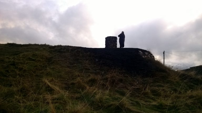 The day after at the Doorie, the scorched grass slope still smelling of smoke.