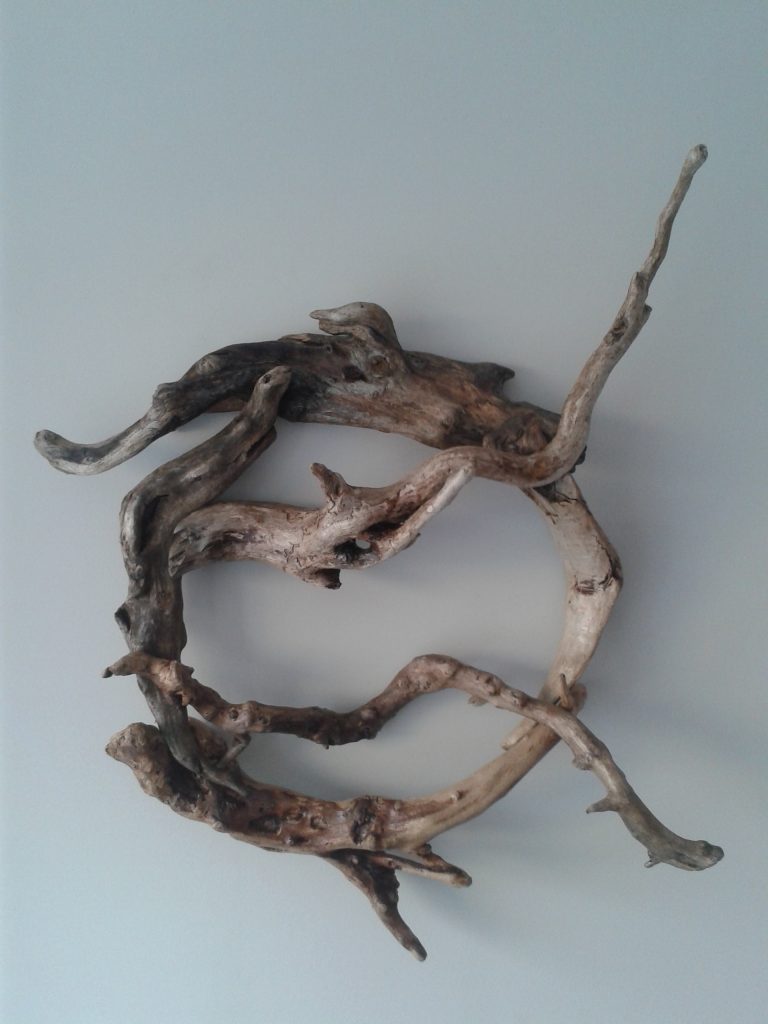 - Kunstwerk door mij gemaakt van 6 stukken drijfhout gevonden op strand: 4 stukken vormen de cirkel, 2 stukken er dwars op geven de Geest (naar boven) en de Ziel (horizontaal) weer