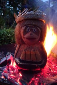Onze wicker, een kokosnoot-aapje met een tros bananen, troffen we aan bij de Hanos. Hij stond in het restaurant en was gelukkig te koop. Het was een spaarpot, dus onze dankzeggingen en wensen konden we mooi posten in z’n buikje. Natuurlijk heb ik de visitekaartjes van Greenthingz en mijn coachingspraktijk erin gedaan en een briefje met mijn dankzegging over hoe het leven zich aan mij ontvouwt. En de wens naar verbinding geuit. Wat mijn man en onze vriend gepost hebben, is geheim, dat weet ik ook niet. De volgende dag hebben we gekeken wat er over was van ons offer. Een klein brilletje, van het aapje, en drie grote schroeven. Wat mooi! Dat ik het komende jaar mag zien dat er verbinding is… en dat driemaal 🙂 Voor elk van ons. Symboliek, wat hou ik daarvan, het leert me om nog meer de verbinding te zien.