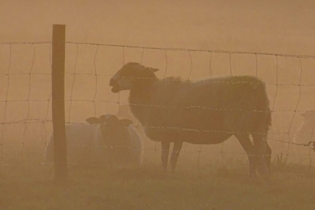 In het nog donkere ochtendlicht zie ik wat zitten op een paaltje aan het eind van de dijk. Het blijkt een behoorlijk zwarte eekhoorn te zijn, eigenlijk nog nooit gezien hier. Hij huppelt van paaltje naar paaltje en verdwijnt achter de schaapskooi. Als ik daar even later ook ben en om de hoek kijk, vliegt er vlak voor me een prachtige witte buizerd op. Ik weet dat hij hier woont, ik zie ‘m wel vaker, maar niet zo dichtbij. Tijdens mijn wandeling kom ik ‘m vier keer tegen en steeds vrij dichtbij.