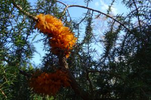 Ik besluit een korte wandeling te maken. Ik merk dat ik best een beetje jumpy ben. Ik ga dan ook als eerste bij B8 aan. Het pad naar het bos is flink besloten door de hoog opgeschoten beplanting van jonge elzen, riet en fluitenkruid. Het voelt als een holle weg 🙂 Het pad naar B8 zal ik deze keer niet aflopen. Ik ben schoon van gedachten als ik bij B8 aanga. Ik heb geen idee wat zijn boodschap zal zijn deze keer. Ik krijg ‘Afstand’. Afstand? Afstand waarvan of afstand tot wat of afstand nemen van… ? ’Afstand’, het krijgt niet zo een twee drie een “O, ja”.
