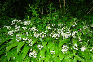 Het is lekker buiten. Met een vest aan en een sjaal om is het goed te doen. Er hangt een bloemige geur, de daslook (mag voor bloemig doorgaan, maar ik krijg er voornamelijk keukengevoel bij), het fluitenkruid, de meidoorn. De daslook staat voornamelijk in de woonwijk, in het bos gelukkig niet. Daar overheerst de zoete weeë bloemengeur. Het is 22.30 en er is eigenlijk niemand meer op straat. Mijn pirouettes doe ik zonder publiek. Wel tref ik veel slakken… vijf huisjesslakken overleven die ontmoetingen niet, zouden die ook uitgekeken hebben? De onweersbui van vanmiddag (die een flinke inslag in Westenholte maakte, een vriend filmde de boom die getroffen was) heeft het zeer slakvriendelijk gemaakt. Ooit ben ik gestopt met mijn vollemaanwandeling omdat het te heftig was, al die wezentjes die onder mijn schoen de dood vonden. Gelukkig waren het nu ‘maar’ vijf huisjes die kraakten, wat een rotgeluid en -gevoel.
