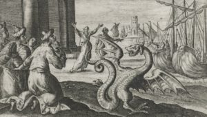 Crispijn van de Passe: Aesculapius reist in de vorm van een draak naar Rome (1602 – 1607). Collectie Rijksmuseum