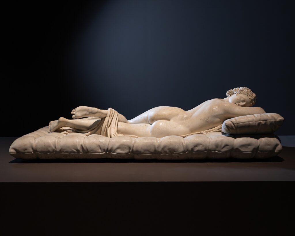 Slapende Hermaphroditus. De liggende figuur van Hermaphroditus is Romeins, uit de tweede eeuw v.C., maar het matras en kussen zijn er in de zeventiende eeuw bij gemaakt door Gian Lorenzo Bernini. Foto © Rijksmuseum/Amie Galbraith