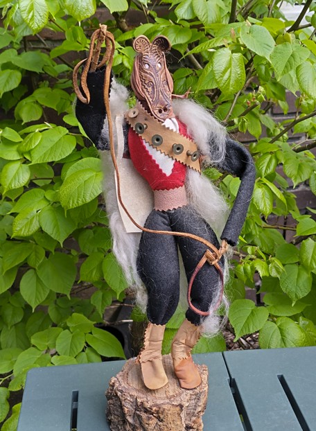 That I made a connection with what I later found out to be an Issohadores was the highlight of my visit to Sardinia. When I was in Cagliari I visited a couple of museums including the ‘Museo Archeologico Nazionale’. Afterwards I checked out the souvenir shops and found the 3 terracotta figurines I mentioned in the main article. I also found a dusty, long unnoticed figure of a masked person, dressed in red & white, with a rope, mounted on a piece of Cork. I asked how much it cost, thinking already that it would be way over budget. It wasn’t! The shopkeeper was amazed that I said yes, without hesitation, but also nodded as if it was a recognition of a fellow traveller.